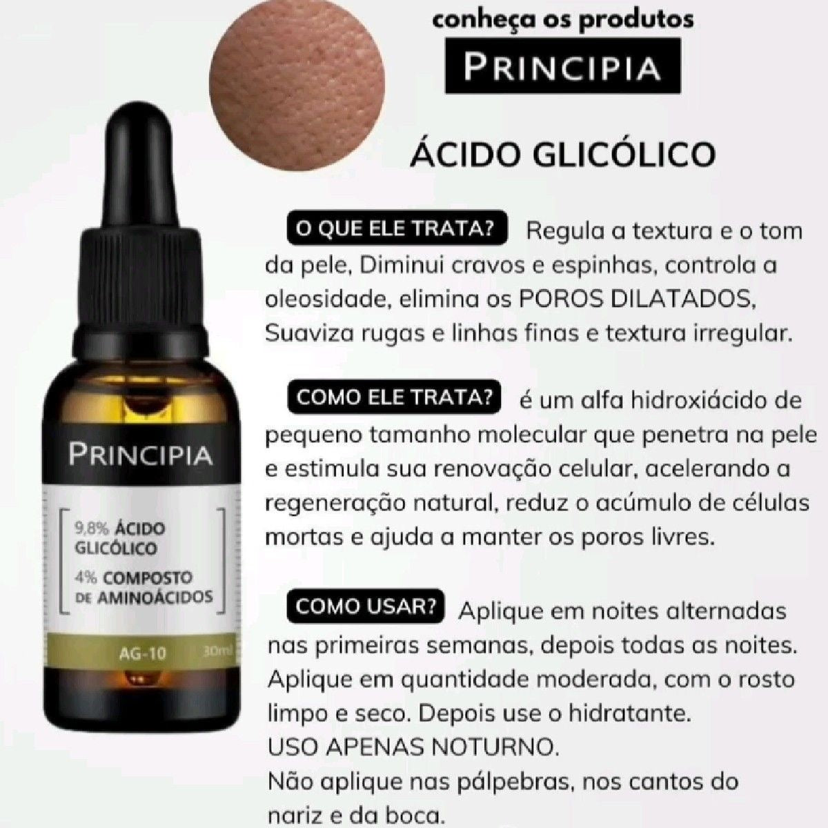 Sérum com 9,8% de ácido glicólico e 4% de composição de aminoácidos para melhora visível das linhas finas e de expressão, acne, tonalidade e textura irregular da pele.